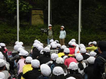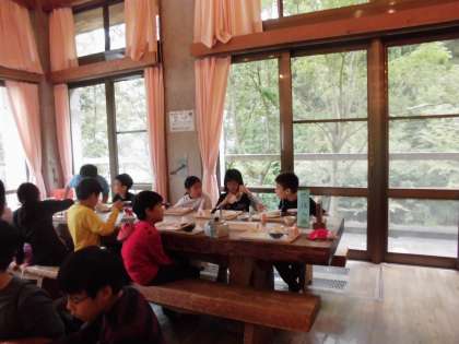 朝の集いでは,代表の人が,修学院第二小学校のことや一乗寺の町のことをしっかり紹介しました。そのあとは,朝食をしつかりいただきました。オムレツやミートボールが人気でした。ごはんとパンの両方を食べた人もいます。