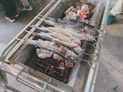 捕まえた魚を自分たちでさばいて調理します。
