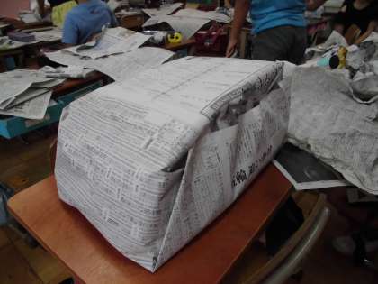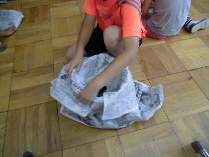 身近なものを新聞紙で包み,包む前の印象と包んだ後のちがいを楽しみました。