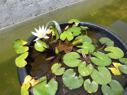 今年は,ロータリーの池にスイレンがあります。金魚やオタマジャクシ,メダカもたくさんいます。