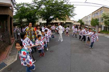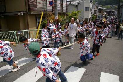 子どもみこしは修二の元気な掛け声が聞けました。幼稚園・保育園に行っている小さな子ども達もがんばって引っ張ってくれました。