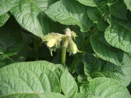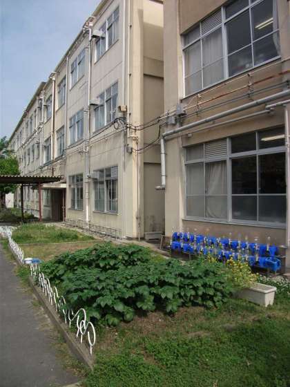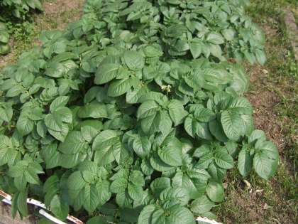 6年生が育てているジャガイモが順調に育っています。よく見ると花も咲きそうです。光合成について学習しますが,たんさん収穫するためには,『芽かき』などの農作業も必要です。