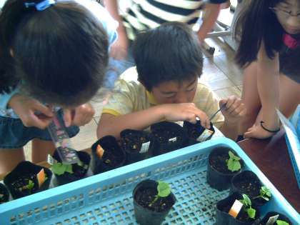 今,まさに土から顔を出したものから,本葉がしっかり出ているものまで,いろいろありました。