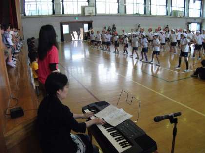 4年生は,『レッツゴー,いいことあるさ』を歌って踊りました。入場から整然と隊形に移動して,流れるようにスムーズに演技しました。