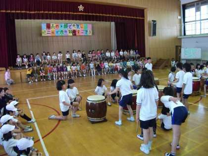 5年生の出し物は『和太鼓』でした。迫力満点の演奏に1年生もびっくりしていました。