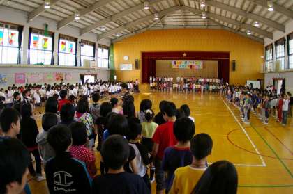 次は全校合唱『友達になるために』でした。三百人を超える全校合唱は迫力がありました。歌詞の意味をかみ締めて歌いました。