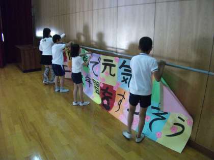 5年生の終わりの言葉で会が締めくくられました。全校が退場した後の片付けも,5年生がしてくれました。