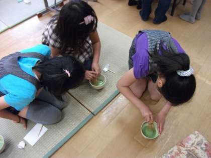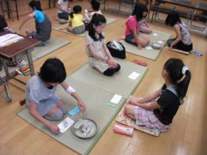 修二小茶道サークルでは,土曜日に月2回中陳みち子先生に来ていただきおけいこをしています。今回は,5月21日の様子です。