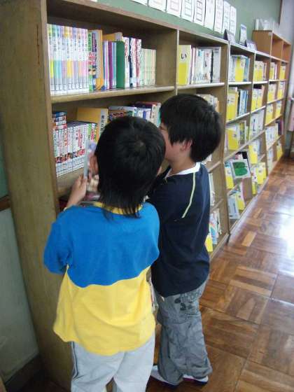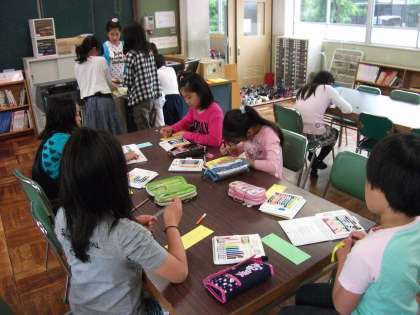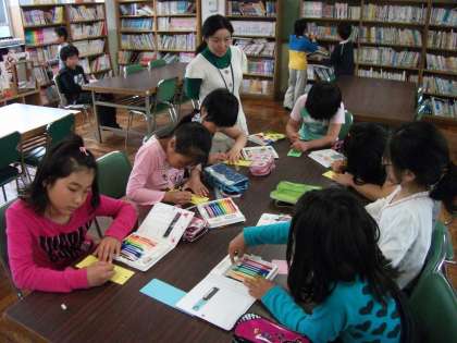 昼休みは,高学年対象の『しおり作り』がありました。高学年の子ども達もたくさん図書室に来てくれました。