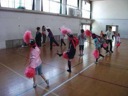 運動会が近づいてくると,昼休みは応援の自主練習タイムになります。これから練習によって,声と動きを揃えていきます。