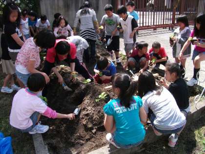 ゴーヤ(ツルレイシ)花壇に定植 〜4年生〜