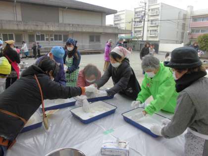 また,その後PTAの皆様によるもちつき大会が行われました。