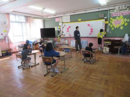 4月9日(木),に組の学習の様子です。校長の名前を全員が覚えていて「かわい先生」と呼んでくれていました。一人一人の自己紹介も聞きました。校長からも一言自己紹介をしました。「焼き鳥とラーメンが好きです!」・・・子どもたちから歓声をいただきました。