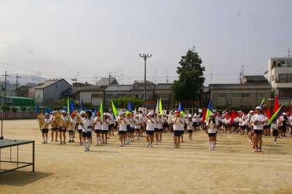 平成23年6月4日,好天に恵まれて運動会を行いました。多数の来賓・地域・保護者の皆様に見守られて,全校児童が全員出席して実施できましたことを感謝しています。