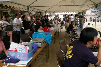 3枚めの写真は,食い入るように見つめる本部席テントの様子です。