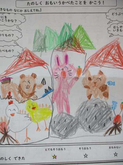 ↓したの しゃしんは,ずがこうさく「かきたい もの なあに」で かいてくれた さくひんです。