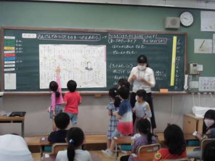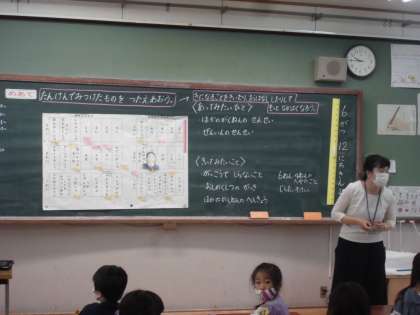 6月12日(金),せいかつの学習では「なかよしいっぱい だいさくせん」の学習をしました。学習のめあては「たんけんで みつけたものを つたえあおう。」でした。学校探検をしてわかったことやみつけたことをお友だちと交流しました。そのあと,もっと会ってみたい人や聞いてみたいことについても発表しました。