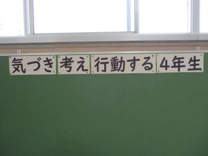 「気づき,考え,行動する4年生」です。高学年として自ら考え,進んで行動する姿を目指したいと思います。