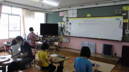 7月10日(金),図工の学習では「七夕かざり」の学習をしました。学習のめあては「長くてきれいなわかざりをつくろう」でした。子どもたちは思いにあった折り紙を選んで素敵なわかざりをつくっていました。やはり金色や銀色が人気でした。