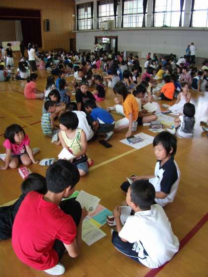 7月6日に児童朝会がありました。児童集会に引き続き,全校読書交流がありました。