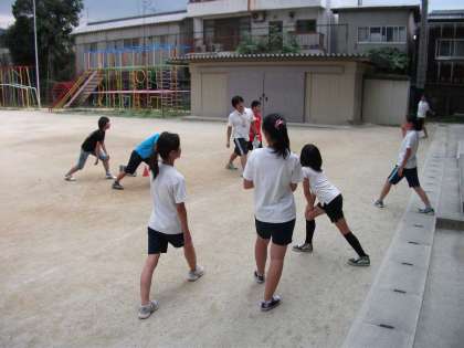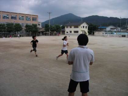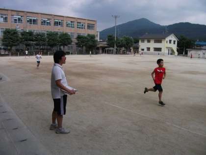 コツコツ毎日放課後に練習している6年生の学年陸上。7月6日は今にも泣き出しそうな梅雨空でした。子ども達は,自分のペースで5分間走に挑戦していました。