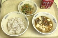 今日の献立は,「ごはん・牛乳・五目どうふ・ほうれん草ともやしのいためナムル・じゃこ」でした。