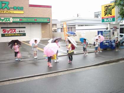 修二小では,普段は集団登校を実施していませんが,災害時等に対応できるように,集団登校の訓練も行っています。5時間目の町別集会で今日の成果を話し合うことになっています。