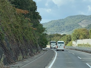 ひたすらバスは走ります。気持ち良くなって寝ている子もいます。13時に岡山県に入りました。