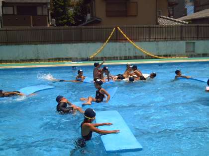 25mにもう少しの子には,泳ぎ方の指導をし,クロールで25mを初めて泳ぎきることができる子が続出しました。