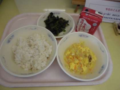 今日の献立は,「麦ごはん・牛乳・親子煮・ほうれん草のおかか煮」でした。