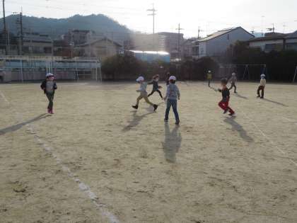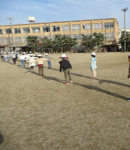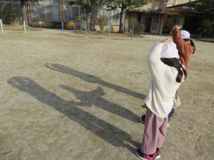 生活科「ふゆとともだち」の学習で,かげふみおにや影遊びをしました。影を使ってみんなで長いタワーを作ったり,顔の形を作ったりと楽しく活動しました。