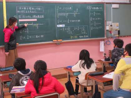 子ども達は,分数の数直線をたよりにこれまで学習してきたことを使って,課題に取り組んでいました。「落ち着いた態度で,みんなで考えることができるようになってきているなあ。」と思って見ていました。