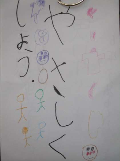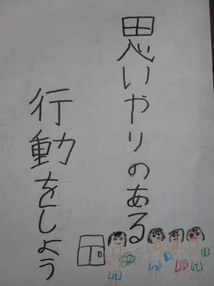 人権朝会での校長先生のお話を受けて,子どもたち一人ひとりが人権標語を考えました。毎日の生活の中で大事にしていきたいことは何かを考えて,一つに絞ってカードに書きました。