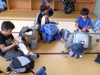 いよいよお別れが近づきました。片付けです。お世話になった60畳ともお別れです。行きには入っていた荷物が,入らなくて大変苦労している人もいました。