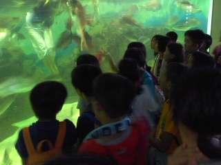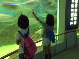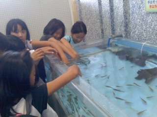 ドクターフィッシュの水槽に手を入れると,山ほどくっついてきて,くすぐったいです。海女さんの餌付けも見られました。