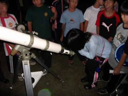 みさきの家の天体望遠鏡を借りて,月とアルビレオ(白鳥座のくちばしにあたるところにある美しい二重星)を見ました。