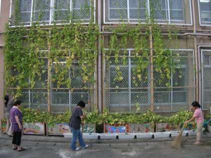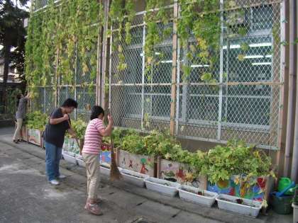 まだ元気に実をつけていたのですが,全体が枯れ始めているということで,教育後援会の方が弦を切ってくださいました。まだ上の方の葉っぱは青々としています。