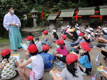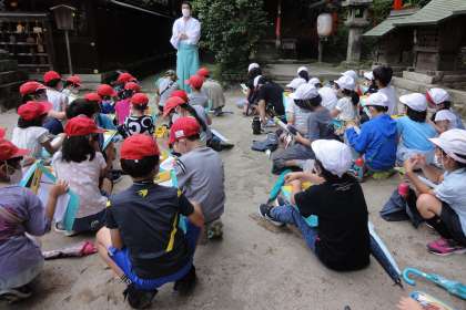 八大神社では,宮司さんが迎えてくださり,たくさんのお話を聞くことができました。