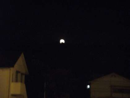 今年の中秋の名月が雲間にしか見られない天候でしたので,翌日の十六夜(いざよい)に再挑戦しました。9月13日は夕方もよく晴れて,月が山から昇ってくる様子が見られました。運動場では,校区の方がグランドゴルフをされていました。