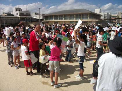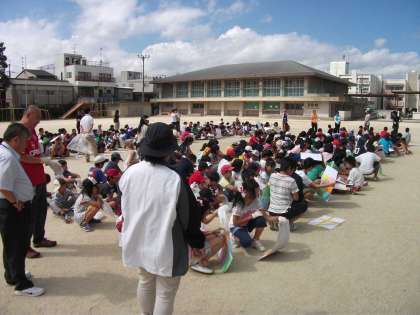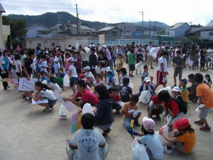 10時に運動場に縦割りで集合して,注意を聞いた後,受け持ちの場所に散っていきました。