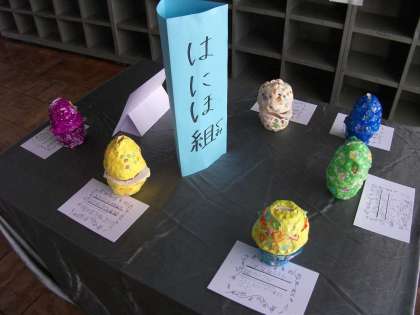 はにほ組の作品は,南校舎3階児童会室で9月23日まで展示しています。ぜひ見に来てください。