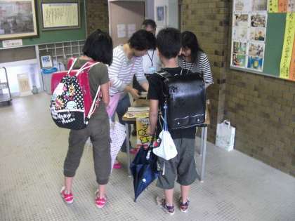 10月28日金曜日の放課後に,修学院中学校で漢字検定を受けるための申込の様子です。。