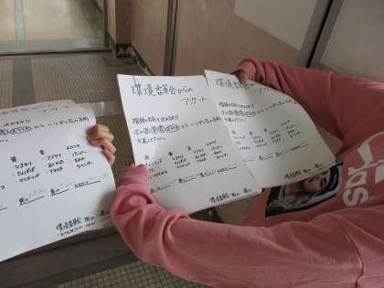 環境委員会では、校内にある4つの階段に名前をつけようと、児童たちにアンケートを取っていました。今日の中間休みに、環境委員会のメンバーが各クラスを回り、アンケート用紙を回収しました。