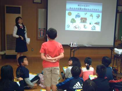 ゲストティーチャーからの質問にもきちっとした態度で答える子どもたち。