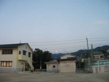 10月12日は満月です。11日の夕方に,「もうすぐ満月ですよ」という円い月が昇ってきました。西空も晴れています。いい校外学習日和になりそうです。