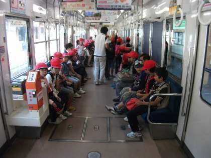 3年生は,一乗寺<叡山電鉄>出町柳<京阪電鉄本線>三条<京阪電鉄京津線>浜大津<京阪電鉄石山坂本線>皇子山と電車を乗り継いで,滋賀県大津市皇子が丘公園へ行ってきました。