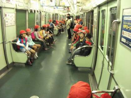 3年生は,一乗寺<叡山電鉄>出町柳<京阪電鉄本線>三条<京阪電鉄京津線>浜大津<京阪電鉄石山坂本線>皇子山と電車を乗り継いで,滋賀県大津市皇子が丘公園へ行ってきました。