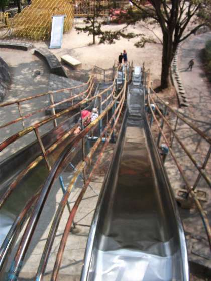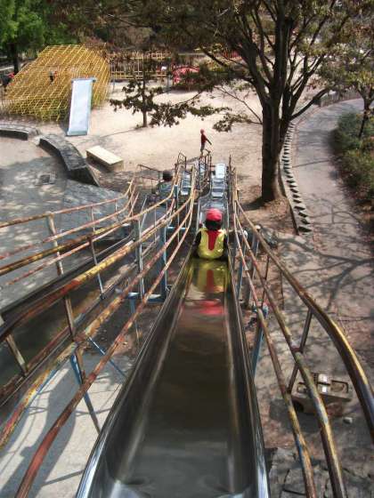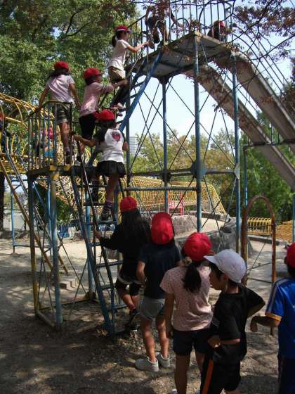 食後は遊具で遊びました。ジャンボ滑り台も人気がありました。けっこうスピードが出るので,ブレーキをかけながら滑っている子どももいました。