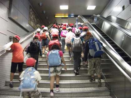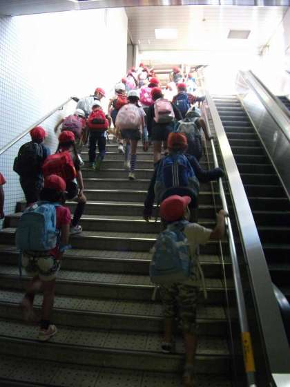 地下を走る電車は,地上に出るために階段が必要になります。家族と乗る時はエスカレーターを使っているのでしょうね。疲れた足腰に階段が立ちはだかりました。