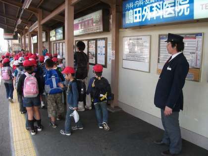 最後は叡山電鉄です。普段はワンマン運転のため前から降車するシステムになっていますが,団体乗車のため,出町柳駅の助役さんが車掌になって特別に乗ってくださり,後ろの扉からも降車することができました。一乗寺駅まで帰ってきたら,学校は目の前です。お疲れ様でした。